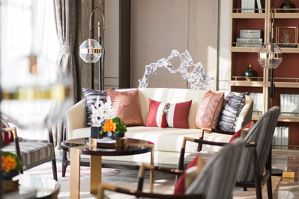 ???? 設計上從清遠的山水中汲取靈感,以開放寬容的視野及現代設計手法刻畫出雅致、靈動的空間,讓東方韻味與現代格調互相交融并構。運用幾何線條和精致華麗的藝術化的處理手法,將金屬時代的線條美、幾何感納入并構成有著現代主義的時代美學。