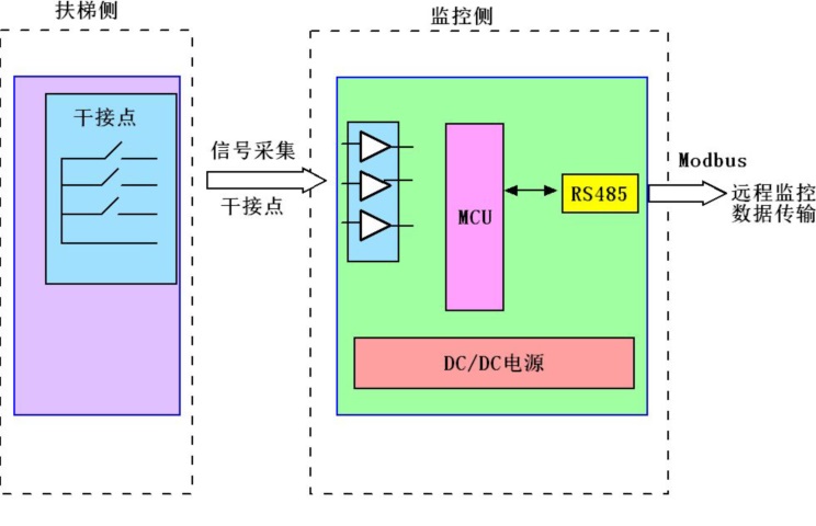 說明:電梯實(shí)時(shí)監(jiān)控系統(tǒng)主要由以下部分組成:電扶梯數(shù)據(jù)采集器、網(wǎng)絡(luò)視頻攝像頭、交換機(jī)、RS485集線器、不間斷電源、中繼器、監(jiān)控平臺(tái)(服務(wù)器)、實(shí)時(shí)監(jiān)控軟件等。電梯數(shù)據(jù)采集器通過電梯信號(hào)輸出接口采集電梯運(yùn)行數(shù)據(jù),并依據(jù)標(biāo)準(zhǔn)的Modbus RTU協(xié)議連接到RS485總線上,實(shí)時(shí)傳輸電梯運(yùn)行數(shù)據(jù)到監(jiān)控平臺(tái)。