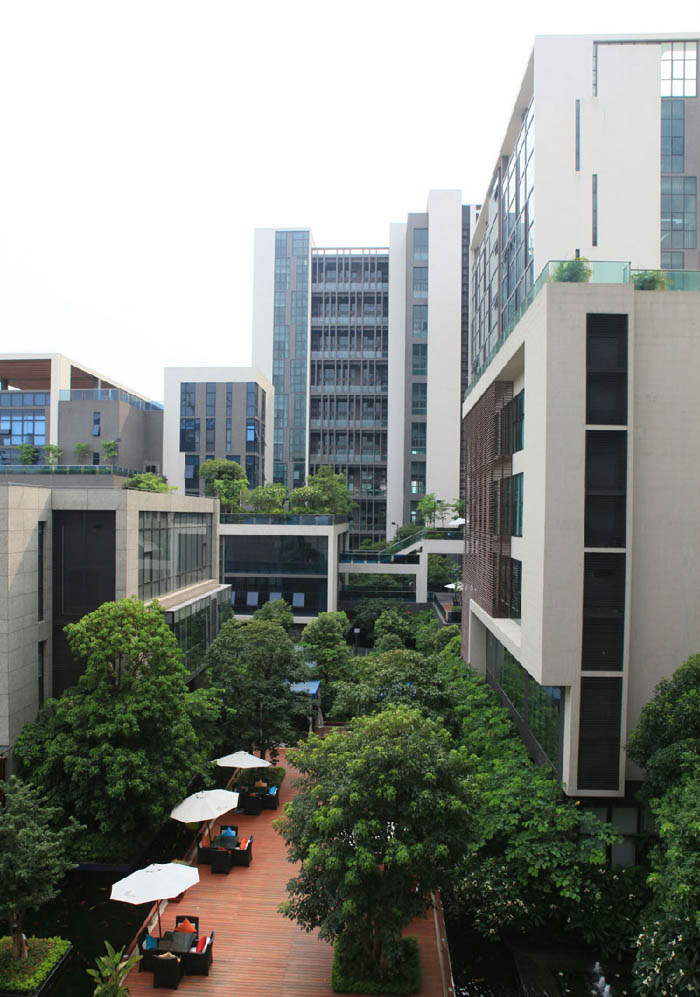 在中國,目前在北京、天津、上海、廣州、深圳等經濟發達城市也有部分大型企業自行置地建設這種商務花園般的辦公場所,比如在深圳華為總部,其擁有的幾十萬平如公園般的辦公環境,其美麗的園景是超乎常人想象的,想象一下,在這種世外桃源般的辦公環境里,你會輕易炒公司魷魚嗎?