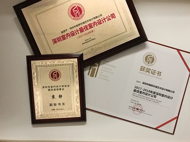??????? 出席此次設(shè)計(jì)頒獎(jiǎng)典禮的嘉賓陣容強(qiáng)大,星光璀璨,值得一提的是,朗昇設(shè)計(jì)憑借2017-2018年在設(shè)計(jì)行業(yè)的影響力,杰出專業(yè)的表現(xiàn),與知名室內(nèi)設(shè)計(jì)機(jī)構(gòu)共同榮獲“最佳室內(nèi)設(shè)計(jì)公司”稱號(hào);設(shè)計(jì)總監(jiān)袁靜憑其豐富的室內(nèi)設(shè)計(jì)經(jīng)驗(yàn),榮任深圳市室內(nèi)設(shè)計(jì)師協(xié)會(huì)第四屆理事會(huì)“副秘書(shū)長(zhǎng)”榮譽(yù)。