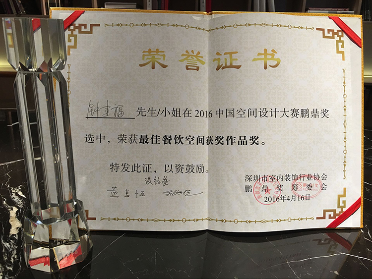 2016-04-22 20:38:38朗昇設(shè)計作品榮獲“鵬鼎獎”最佳餐飲空間大獎