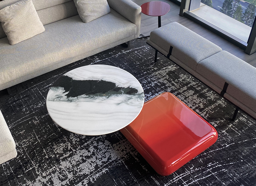 公共區(qū)域簡單擺放某個空間記憶里的石凳,大理石裝飾臺上意外出現(xiàn)的山石與翠綠,長廊盡頭畫面上靜止的海從另一個角度看迎面卻是熱情似火的紅色。喜歡的裝飾就那么隨性安置于某個空余的位置,奇妙的是,空間并沒有因此被填滿,反而出奇地和諧并趨于平靜。