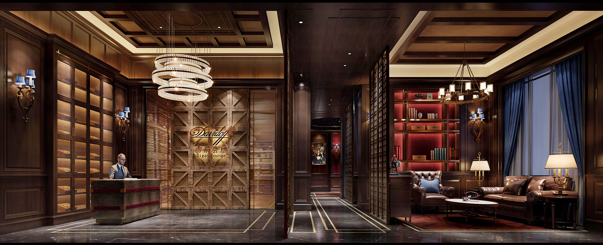 廣州海倫堡雪茄房會所設計-接待區效果圖